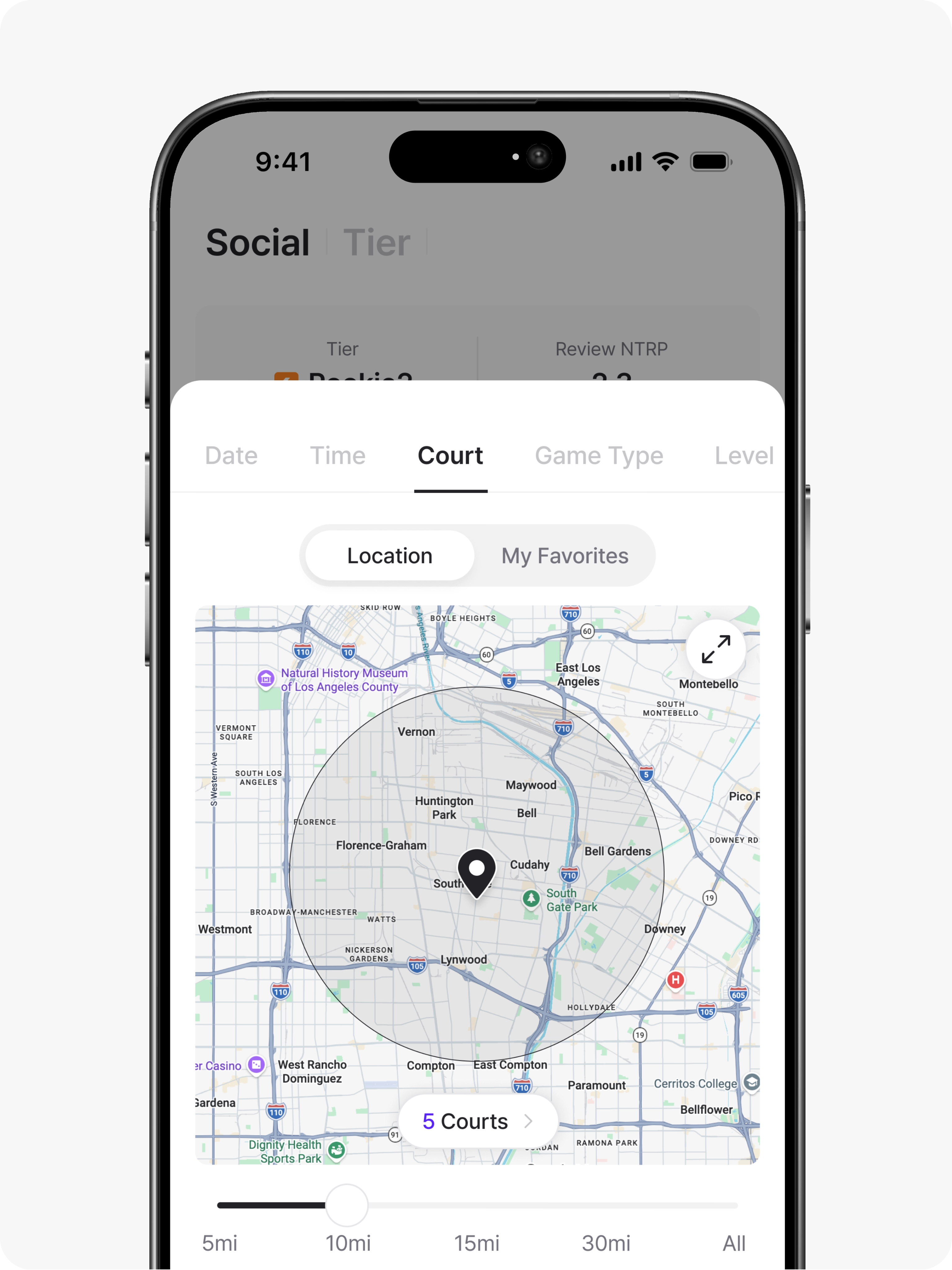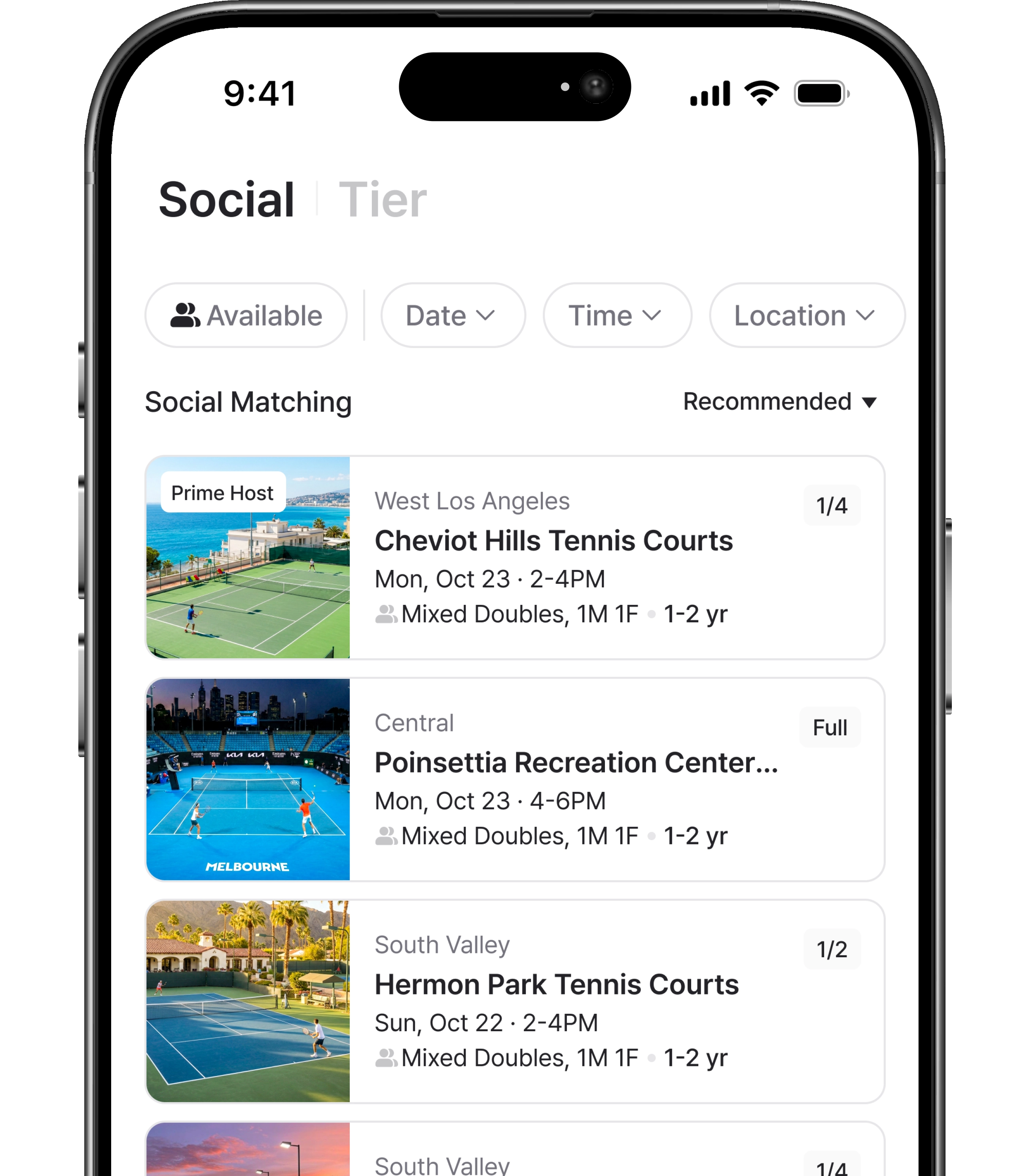 Find matches near your court.