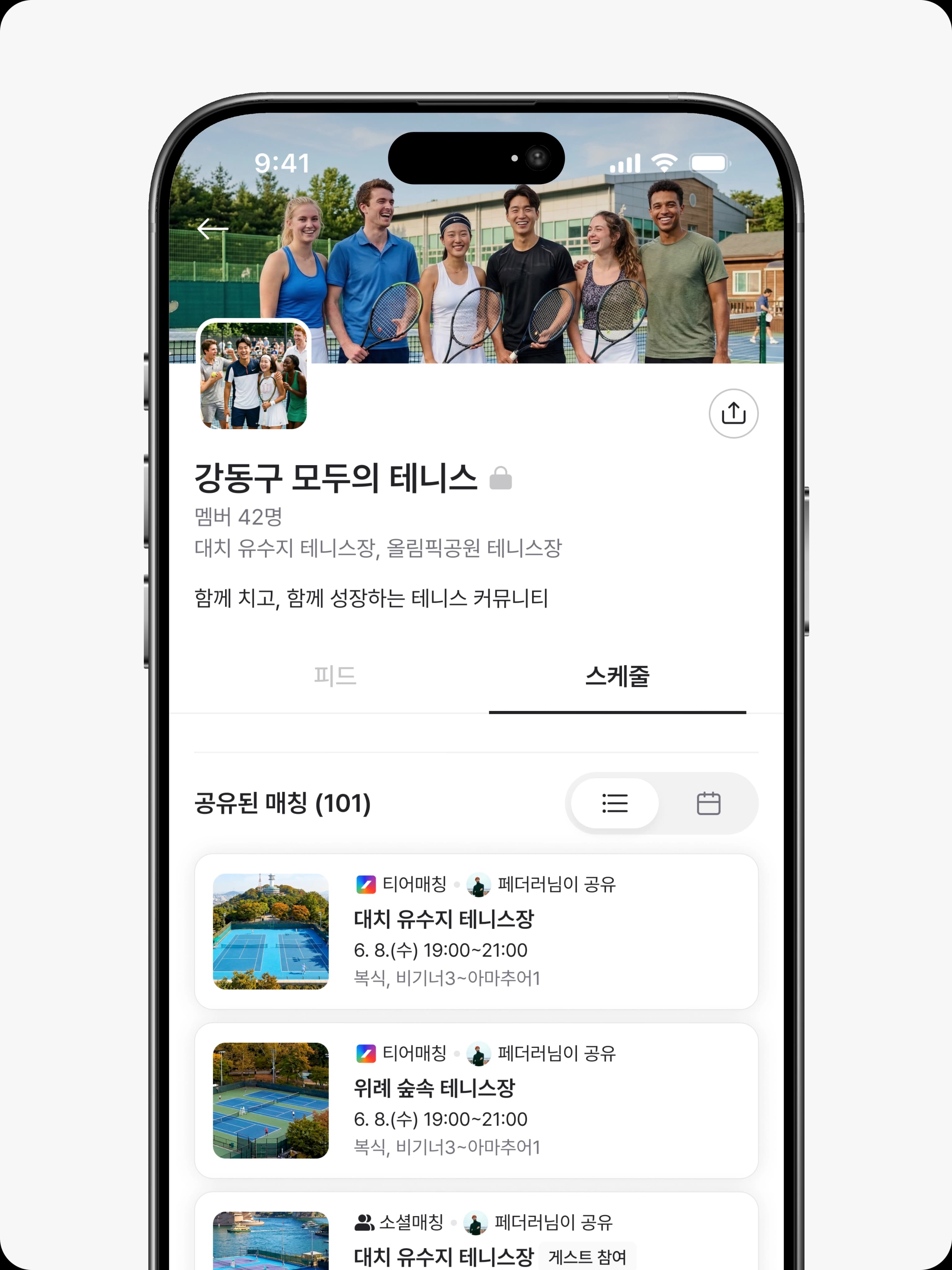 일정, 소통, 경기, 기록, 앱 하나로 다 돼요
